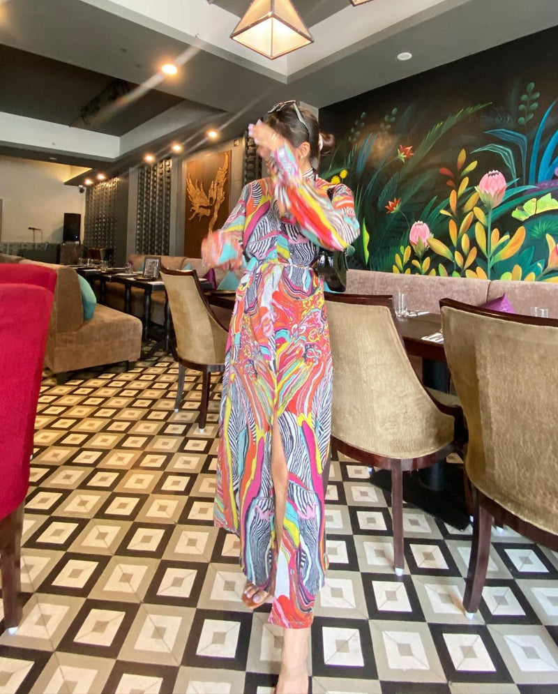 “This dress was made to make a statement — it’s bold, flowy, and everything I imagine when I think of confident dressing. Wear it on days when you want to be the star of the room.”