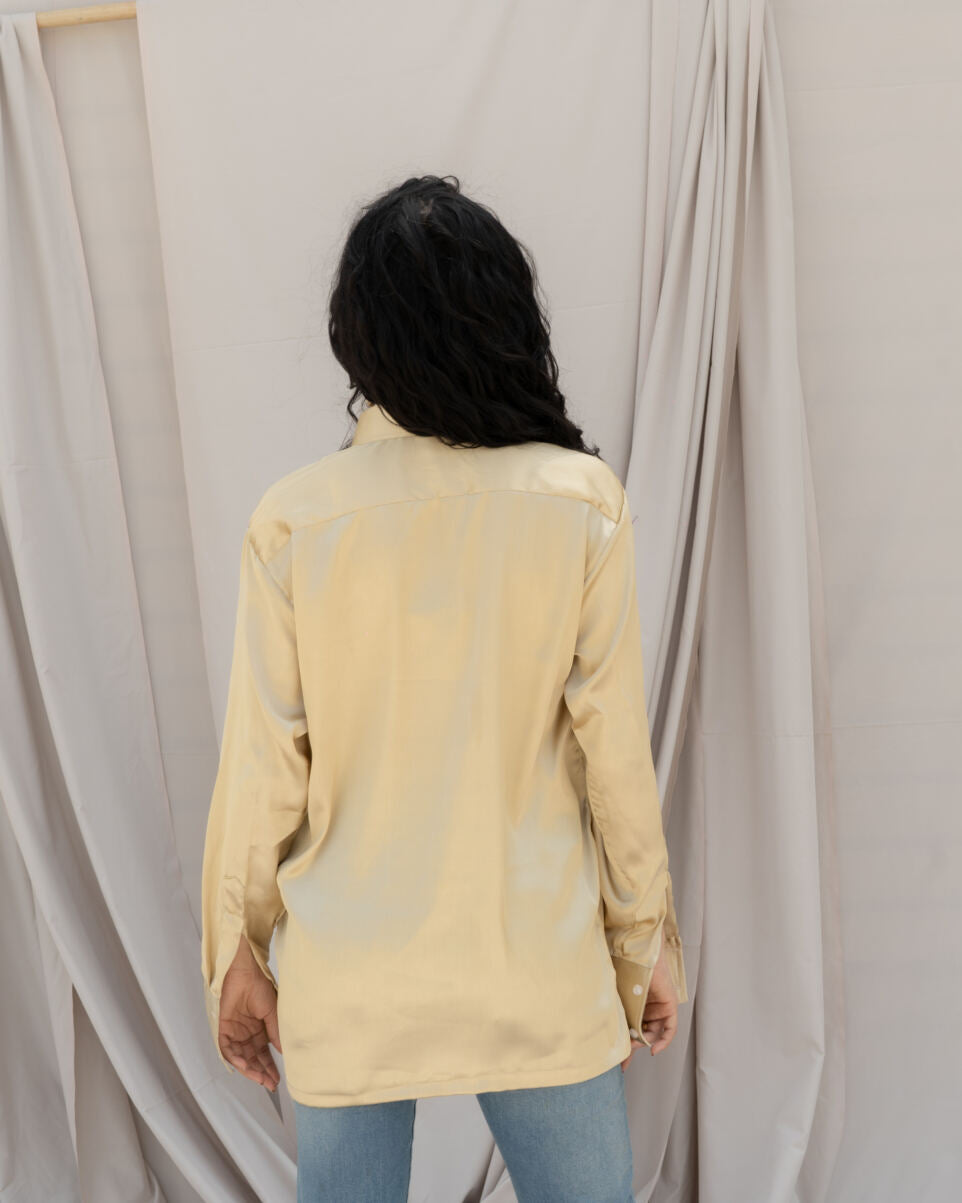 Champagne Satin Shirt – Notch Collar Long Sleeve Gold Shirt