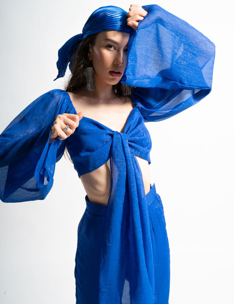 “This royal blue chiffon co-ord is one of my favorite statement pieces – it’s versatile, glamorous, and perfect for women who love options in one outfit.”