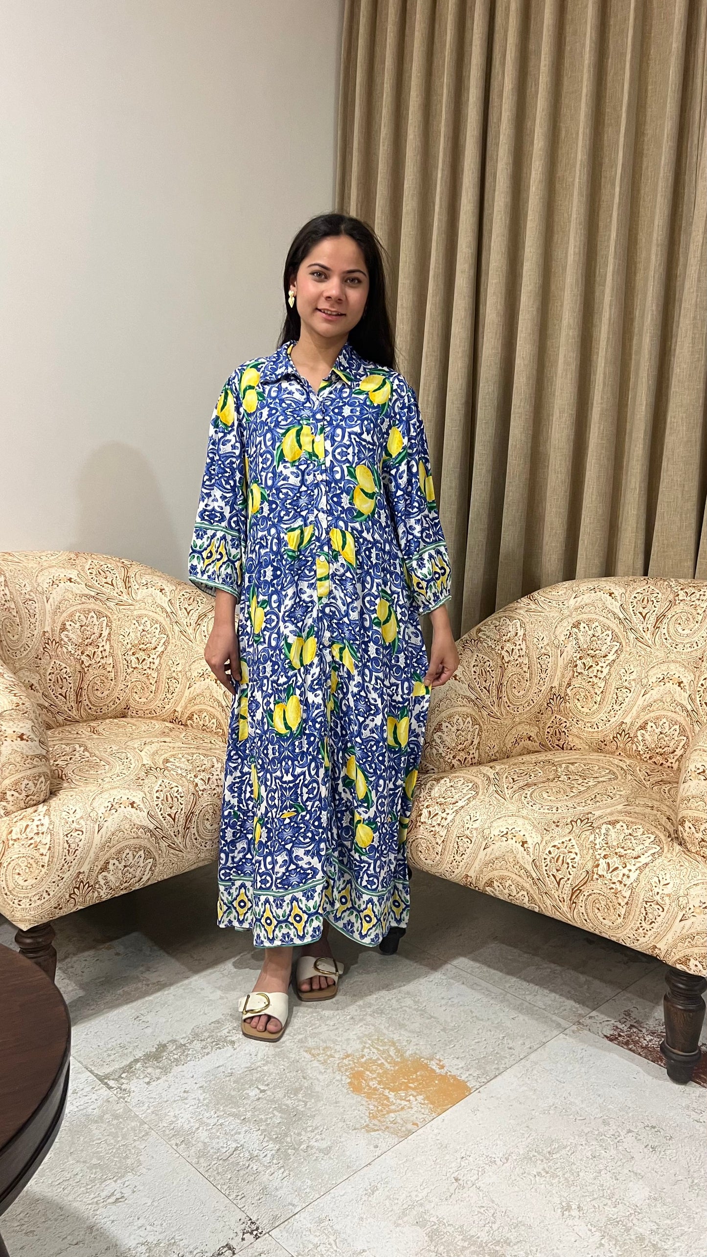 - Blue & yellow lemon print all over