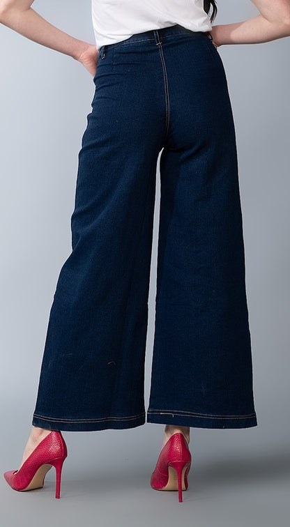 Redefine everyday denim with our Dark-Blue Wide-Leg Stretch Jeans. Featuring a high-rise waist, wide-cut leg, and functional pockets, these jeans are crafted from stretch cotton denim for comfort and style. A timeless silhouette that flatters every body shape.
