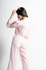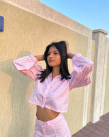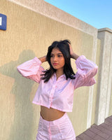 Soft Pink Cropped Check Shirt – Playful & Chic