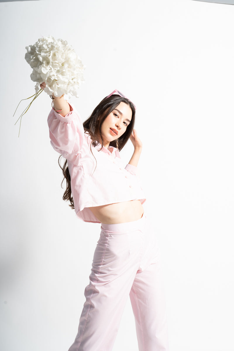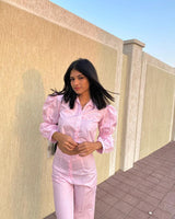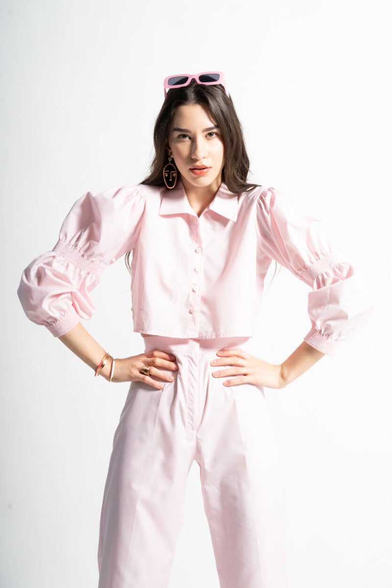 Say hello to your new wardrobe crush. This pink check shirt comes with long shirred sleeves, a point collar, and a cropped length for that perfect blend of sweet and sassy. Designed to fit true to size, it’s your shortcut to effortless everyday glam.