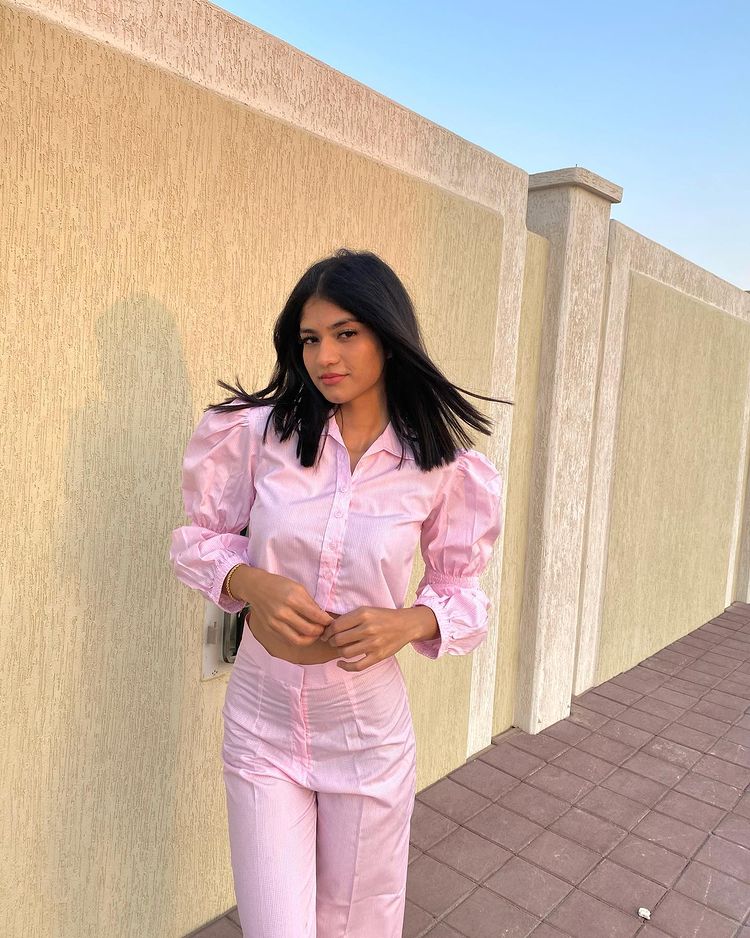 Because it’s versatile enough to be playful in the day and chic at night. Whether styled with denim or a matching skirt, it gives you the confidence of a power outfit with the comfort of cotton.
