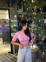 Turn the volume up on your party wardrobe 🎶💖. This pink animal print crop top features a daring tie-back detail, half sleeves, and a bodycon fit that hugs in all the right places. Whether it’s brunch, a day out, or the dance floor, this top makes sure you’re the main character.