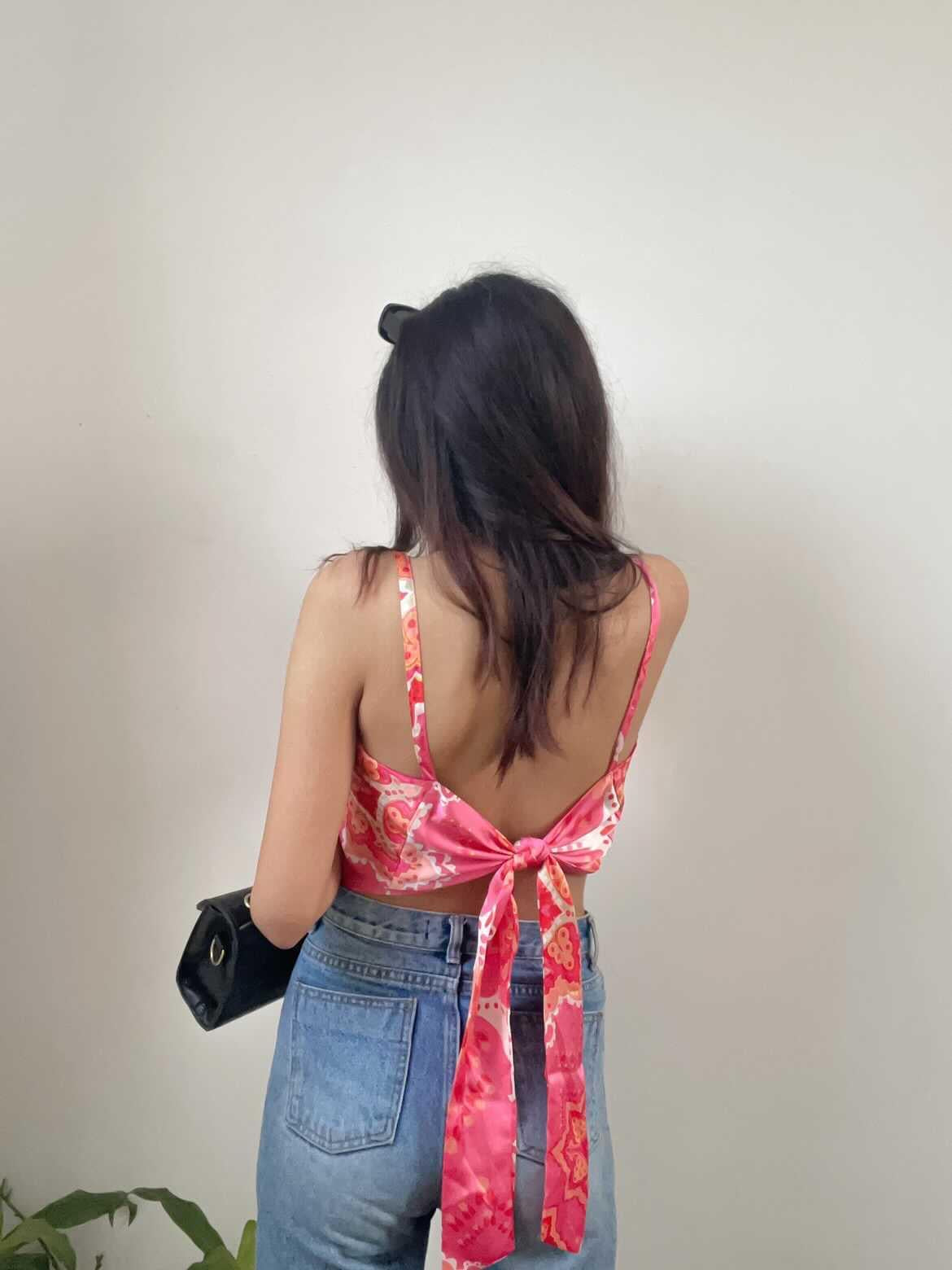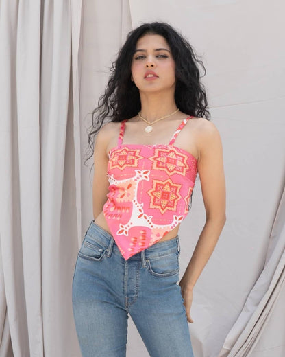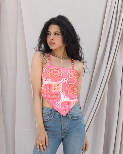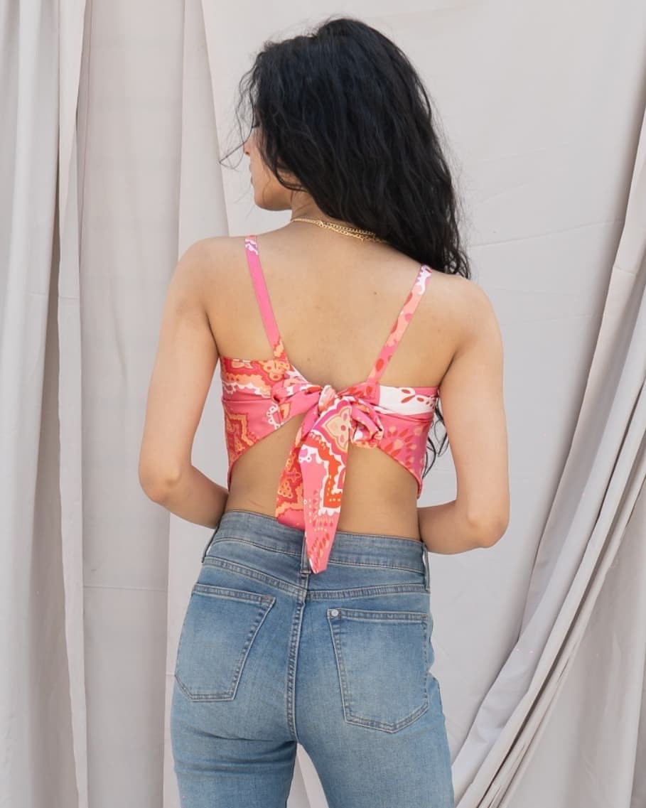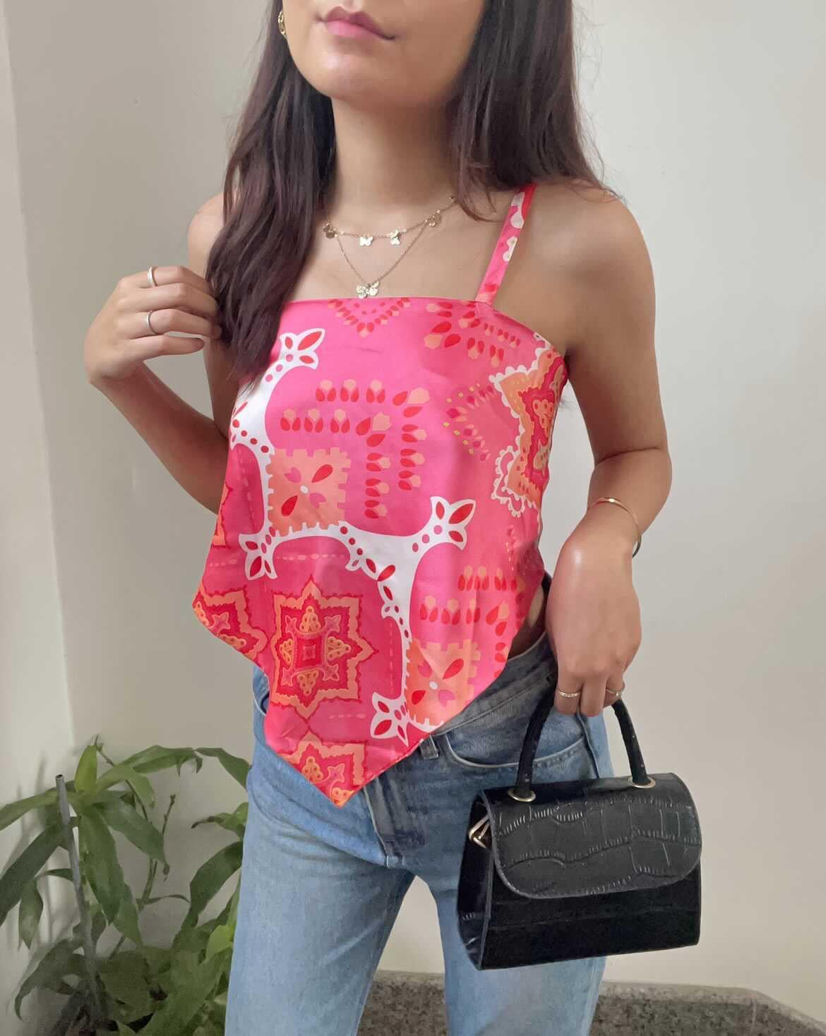 Our Scarf Print Satin Top gives summer confidence in every stitch. With its glossy satin fabric, bold scarf-inspired print, and tie-back design, this one’s made to turn every glance into a double-take.