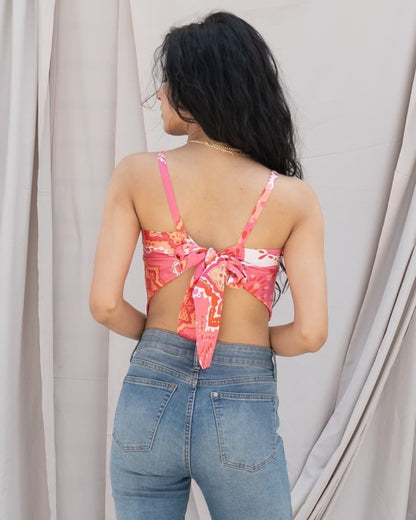 Scarf Print Satin Halter Top | Tie-Back Crop