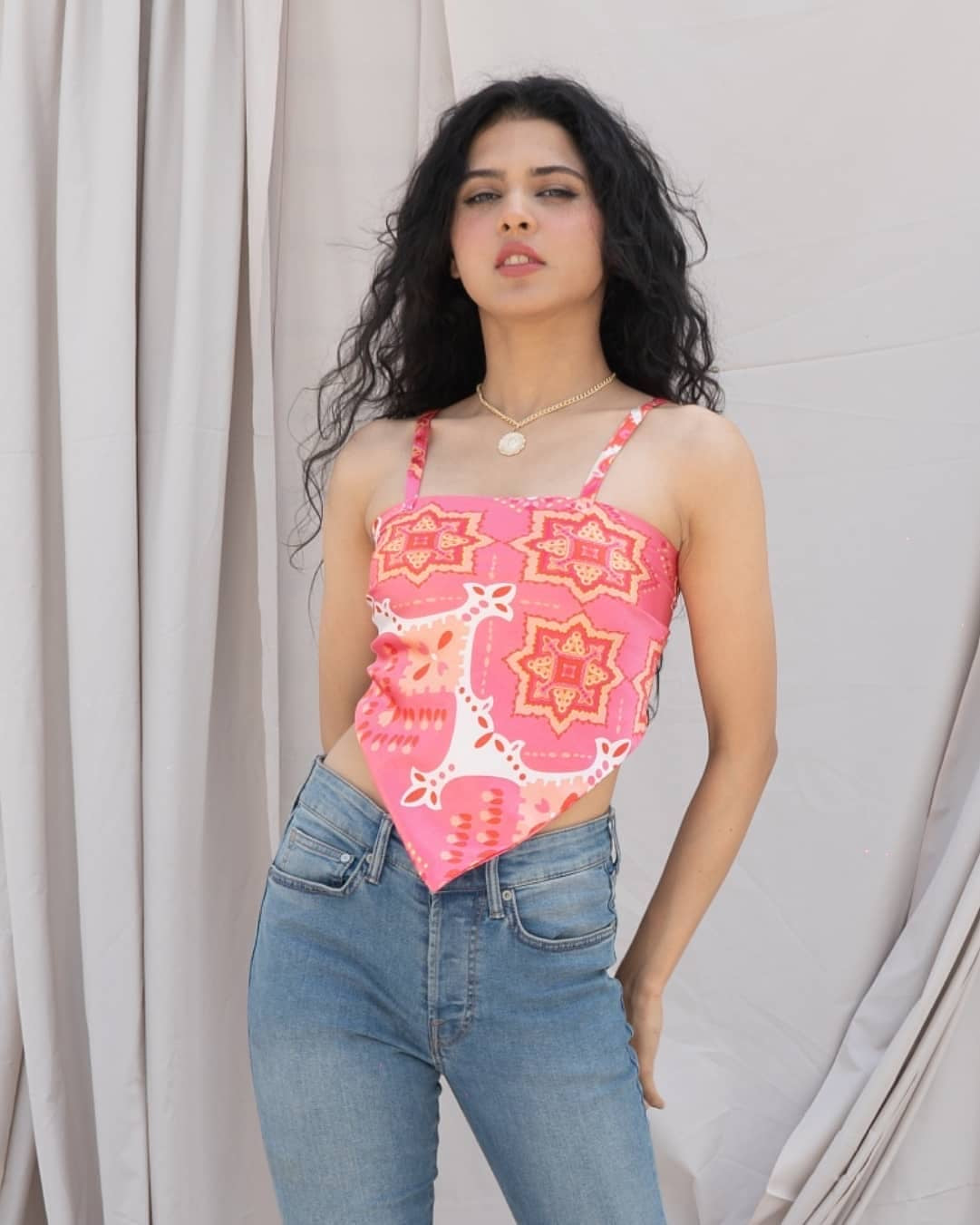 Pair it with high-waisted jeans or white pants and gold hoops for a café date, or go bold with a matching printed co-ord bottom for a full “Missy in her element” vibe. 💖