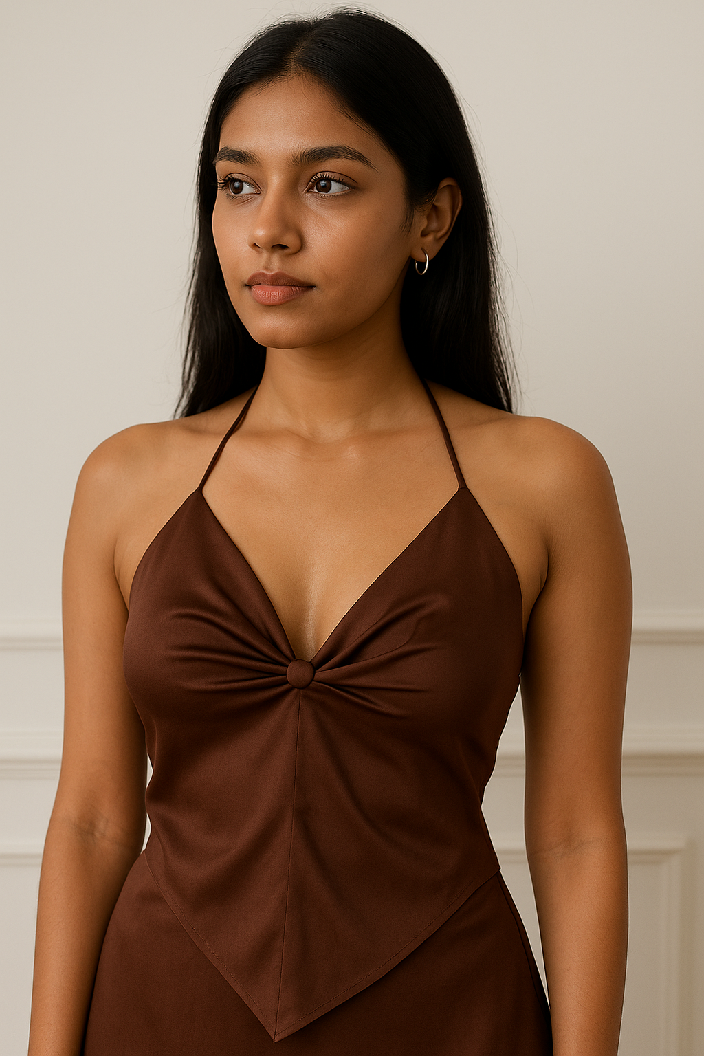 The Cocoa Satin Halter Top is your moment to shine — literally.