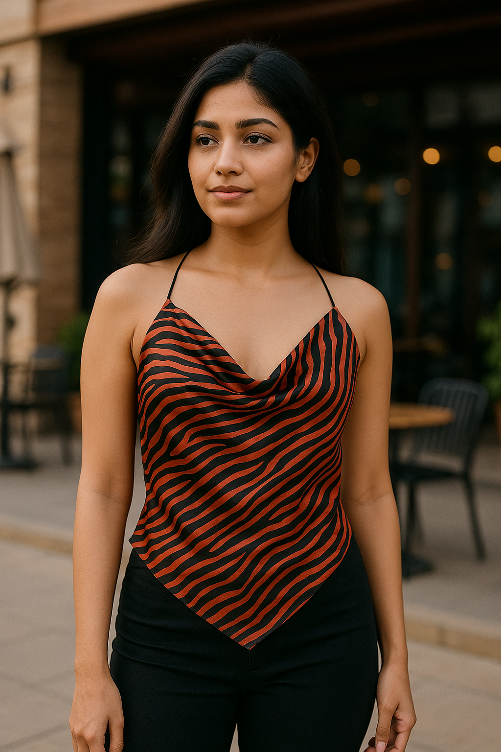 The Zebra Cowl Neck Top isn’t just another party piece — it’s a power move.