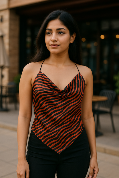 Zebra Cowl Neck Scarf Maxine Top | Orange & Black Halter Top