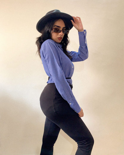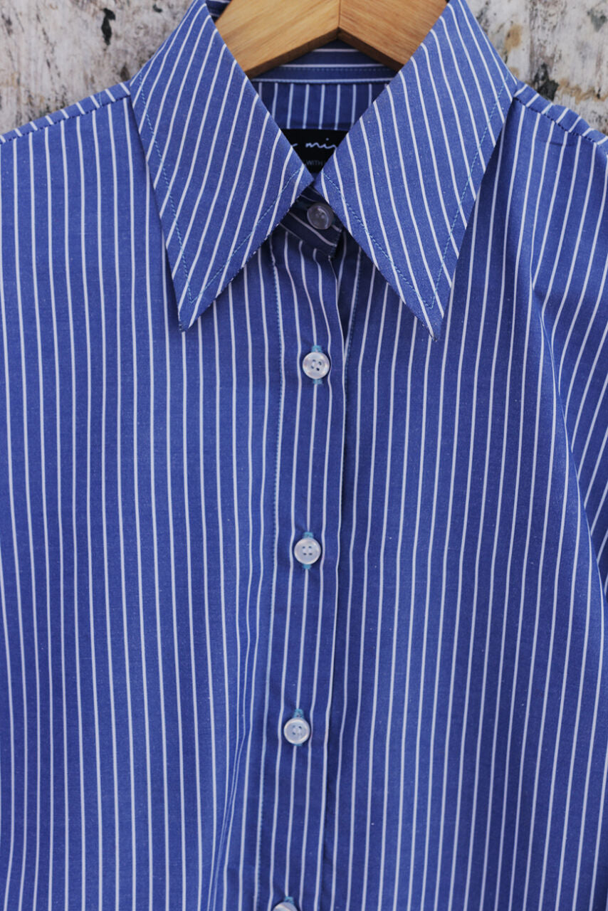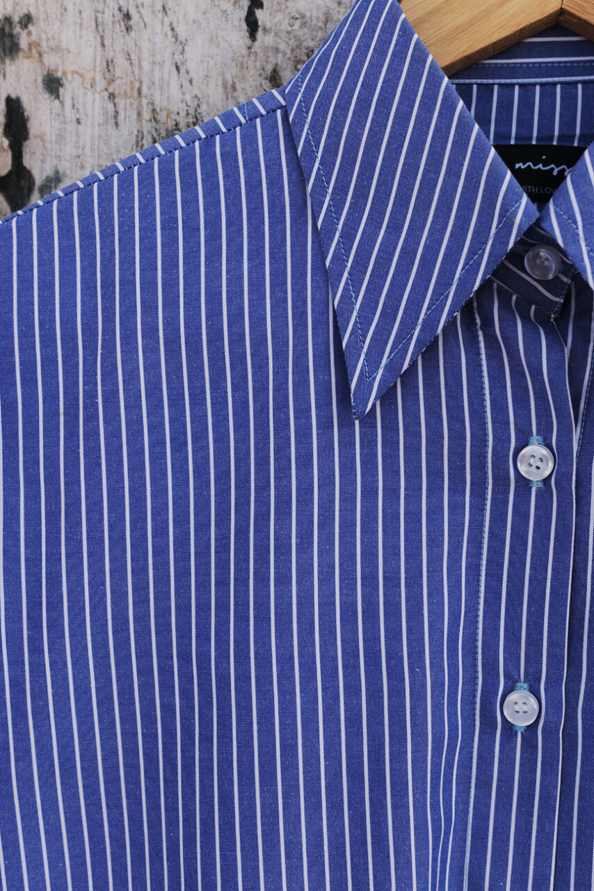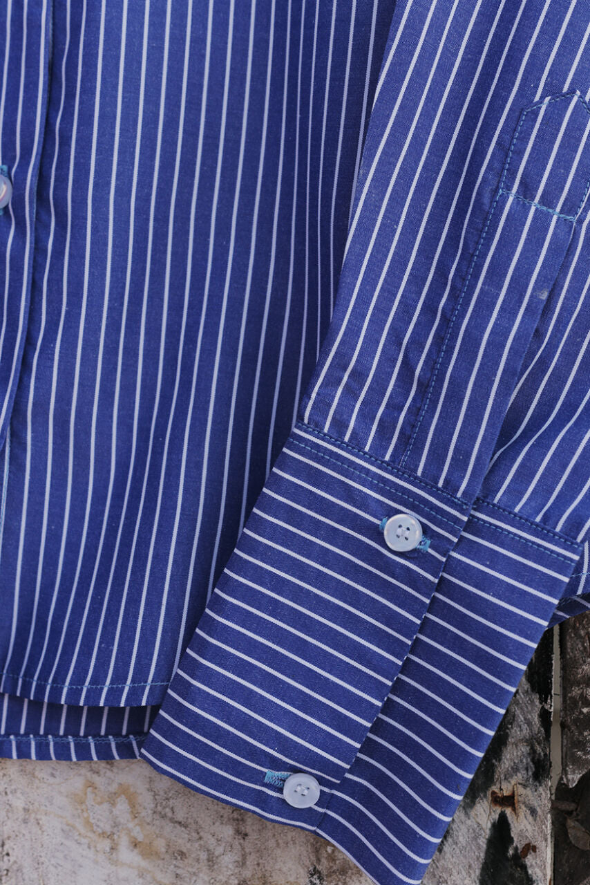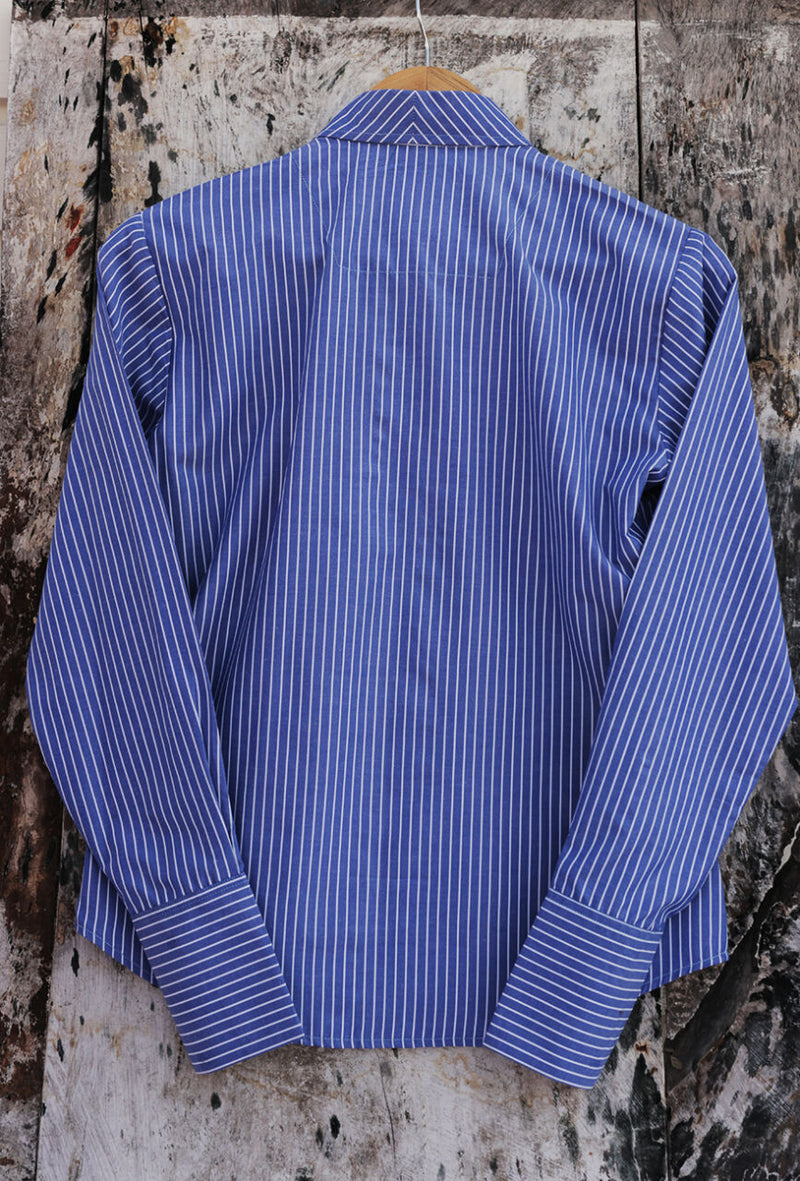 Classic Blue Pinstripe Office Cotton Shirt – Long Sleeve Workwear Blouse