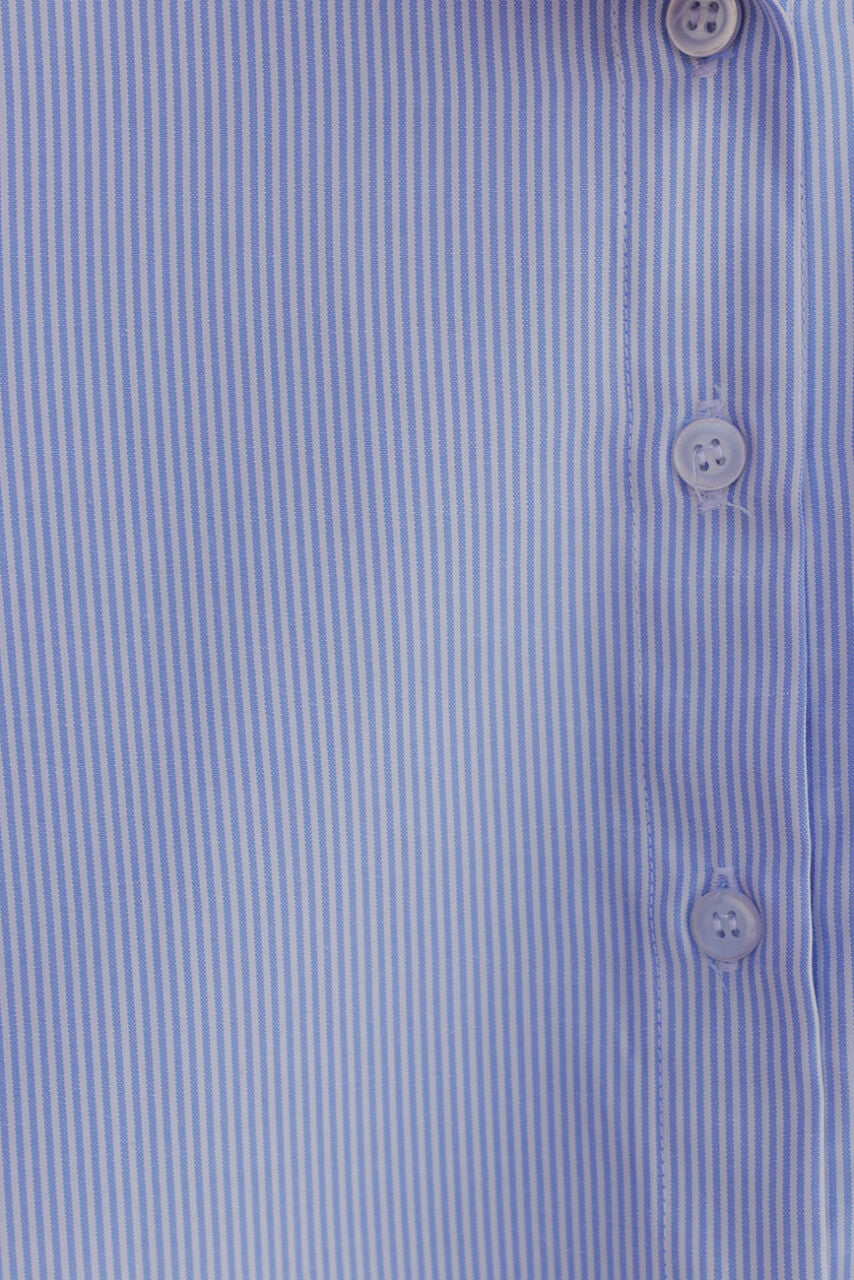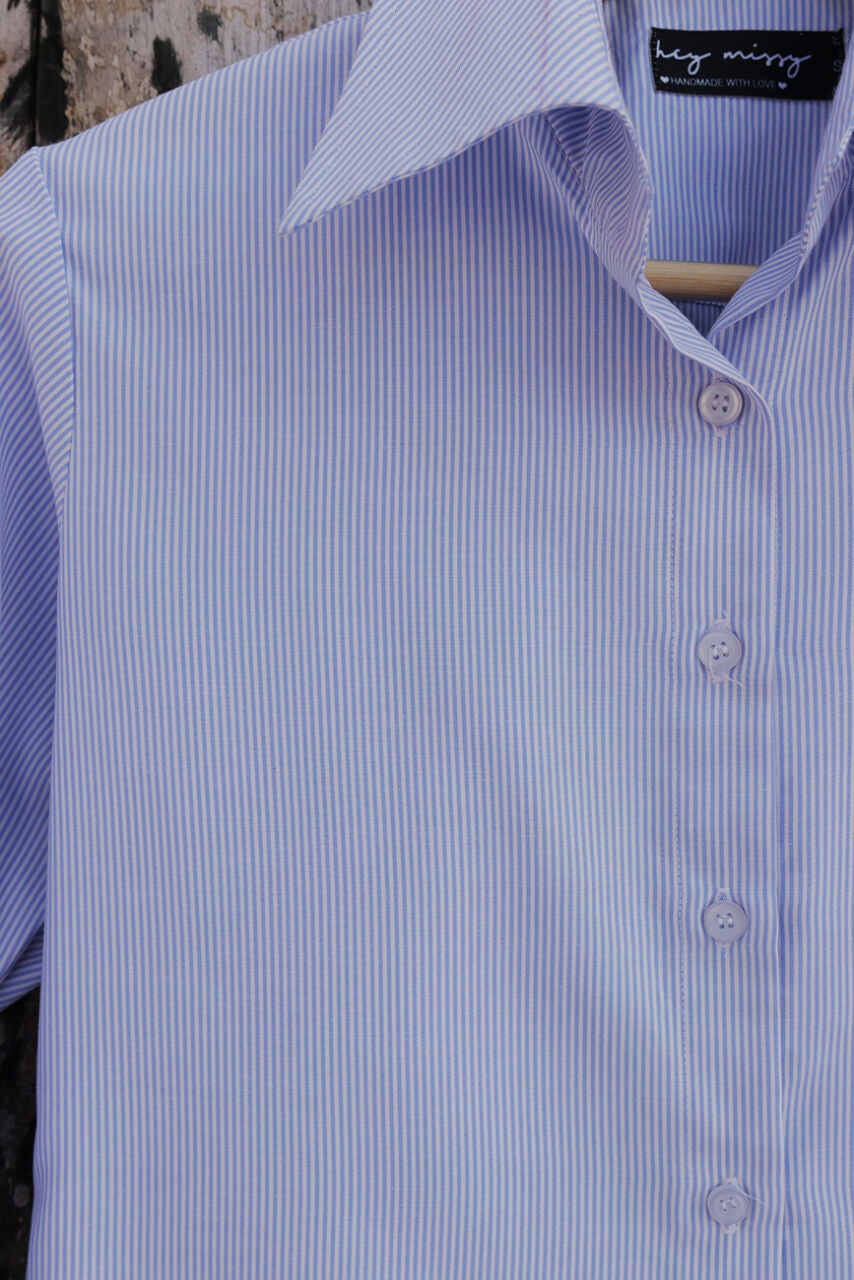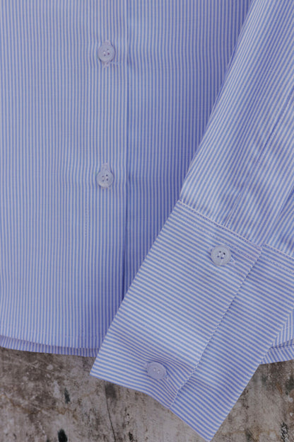 Bring together classic tailoring with a bold twist in this Blue Striped Office Shirt. Designed with a point collar and crisp button placket, it combines shirt sophistication with a corset-inspired detail that makes it an instant statement-maker. Perfect for days you want to turn your basics into show-stoppers.