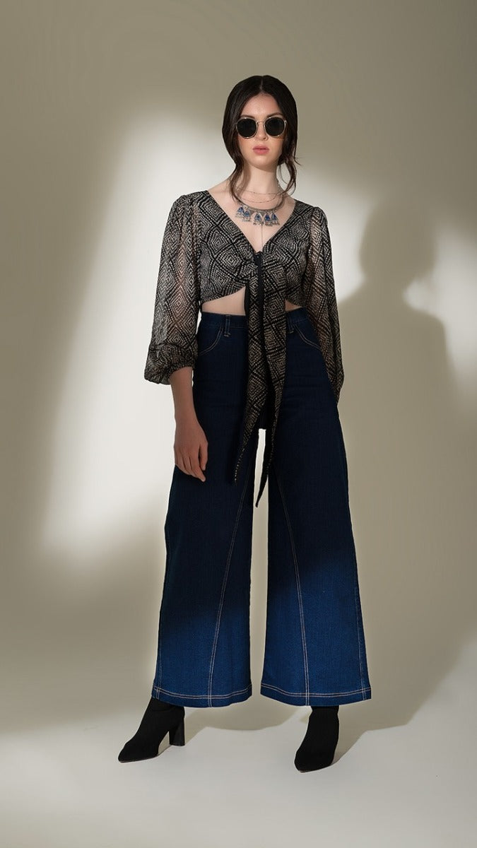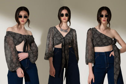 Galaxy Wrap Top | Black Bandhani Wrap Tie-Up Top