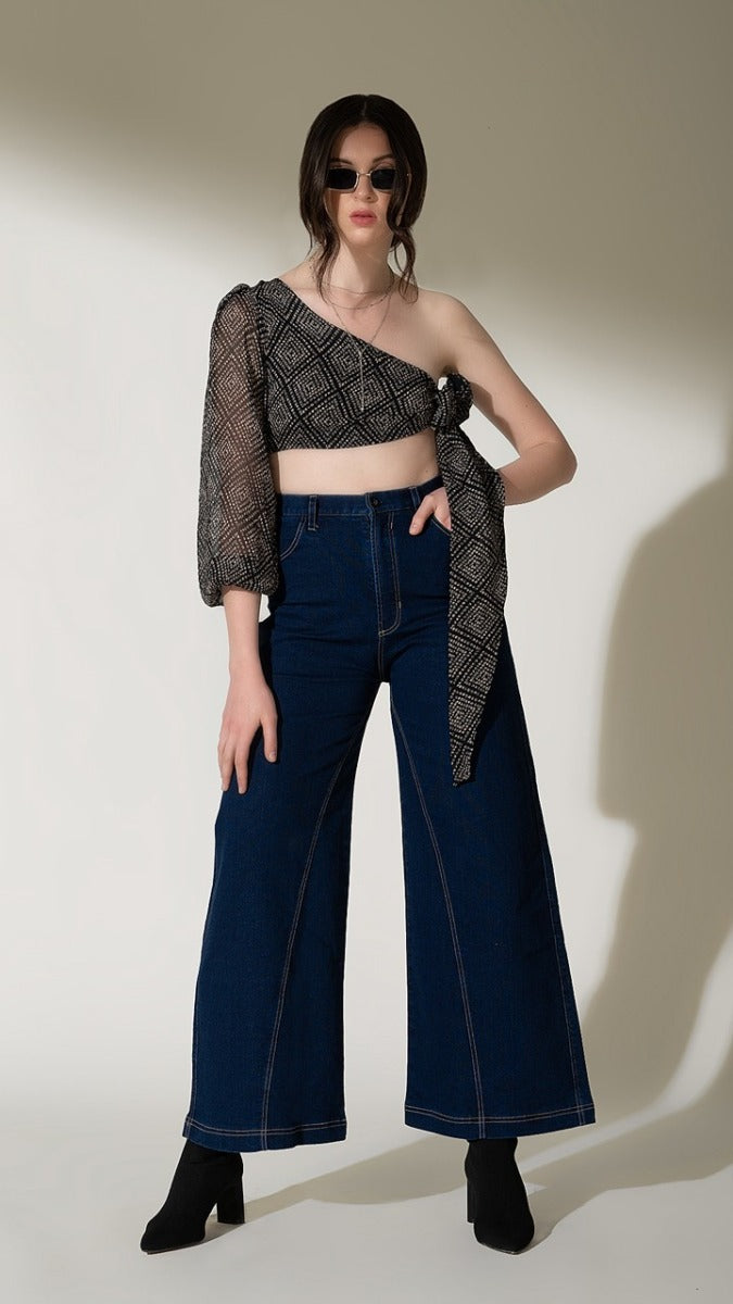 With its flowy chiffon fabric, blouson sleeves, and wrap-tie detail — it’s that perfect mix of chill and charm. Dress it up with statement earrings or go minimal with jeans — either way, it’s giving main character energy.