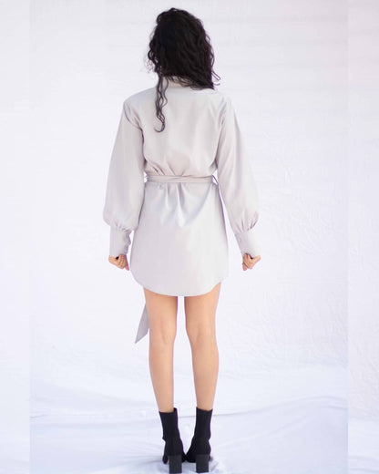 Clean, chic, and endlessly versatile — the Grey Cotton Shirt Dress is your perfect all-rounder. Designed with a button-down front and a waist tie for shape, it gives you that effortless minimalist yet fashion-forward look for every occasion.