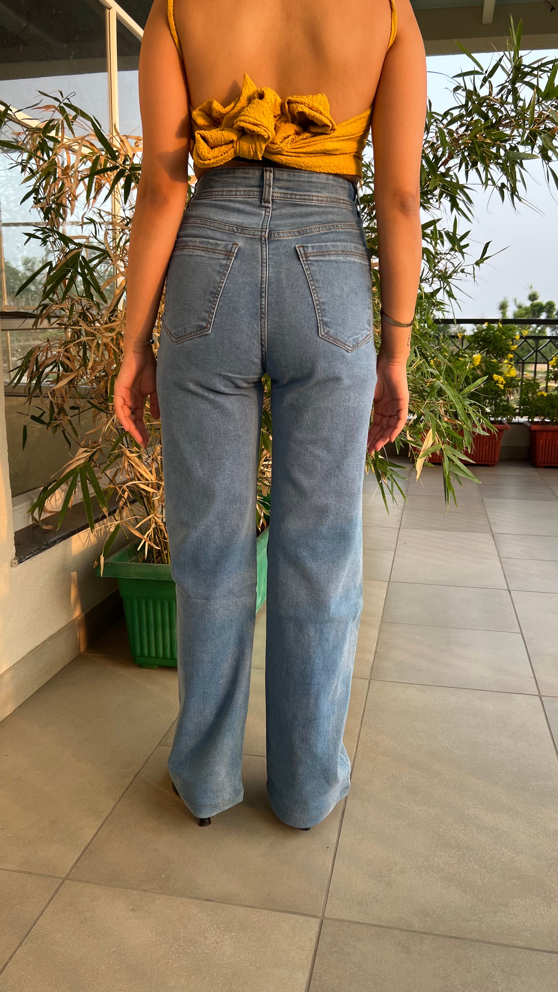 Say hello to your new denim essential — our Light-Blue Straight Fit Jeans. Designed in 100% non-stretch cotton denim, these high-rise jeans with functional pockets and a structured silhouette are perfect for everyday wear. A timeless style that pairs with anything and everything.