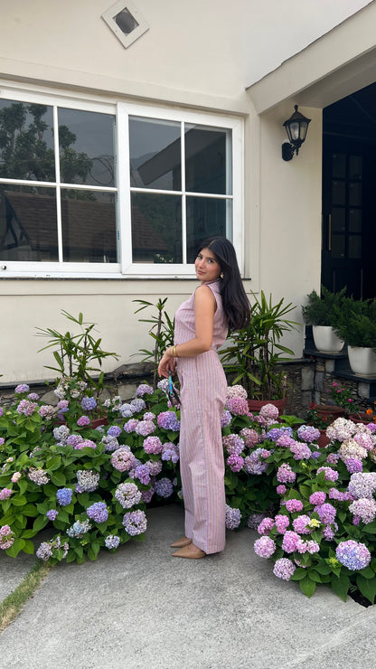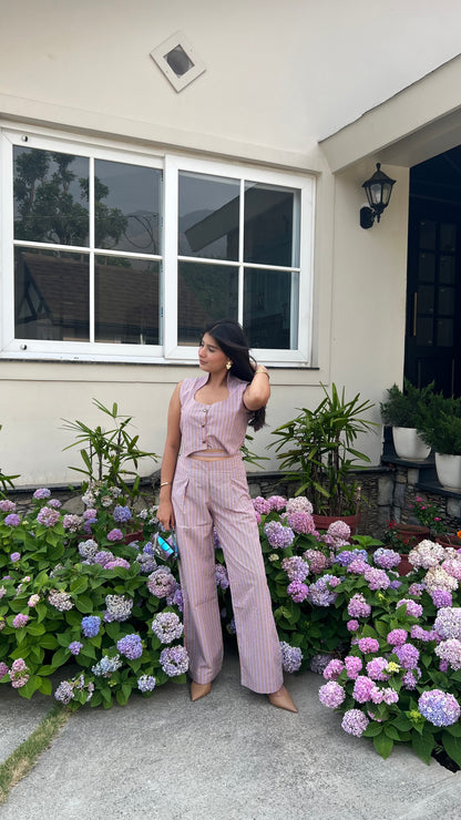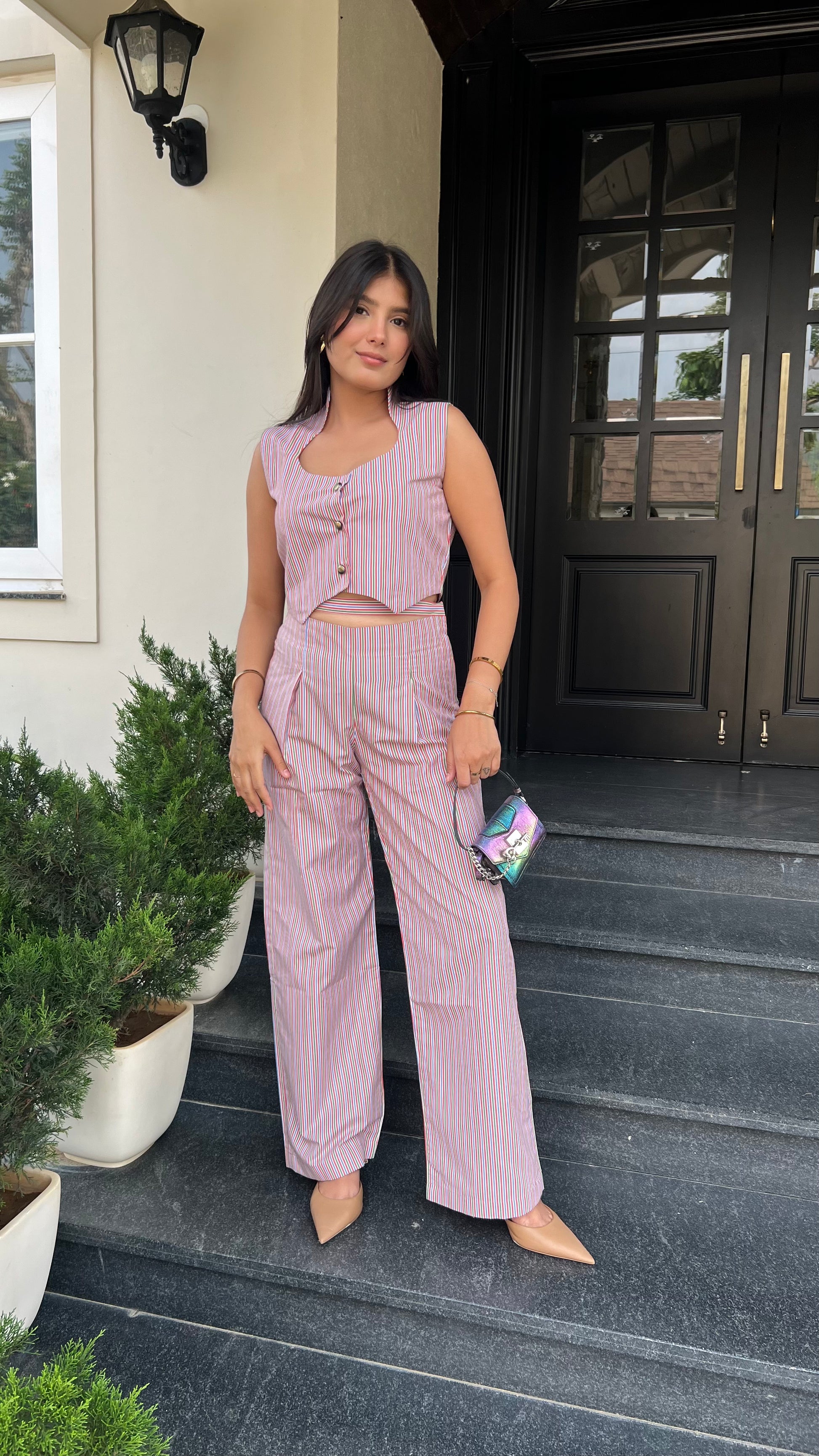Women’s Striped Sleeveless Poppy Co-ord Set – Crop Top & High-Waist Wide-Leg Pants
