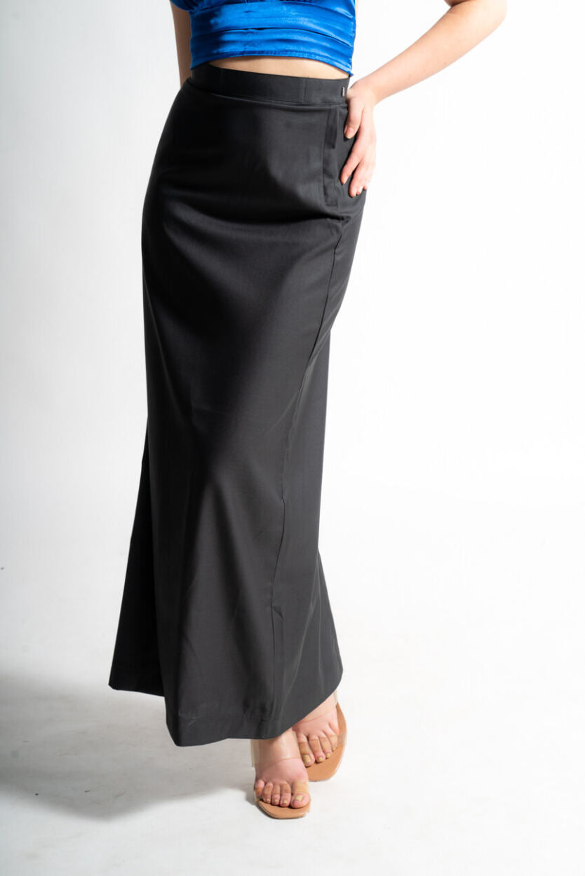Classic Black Maxi Skirt – High Slit Slim Fit Woven Fabric