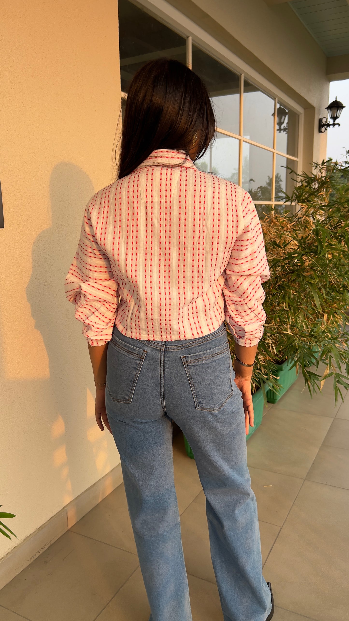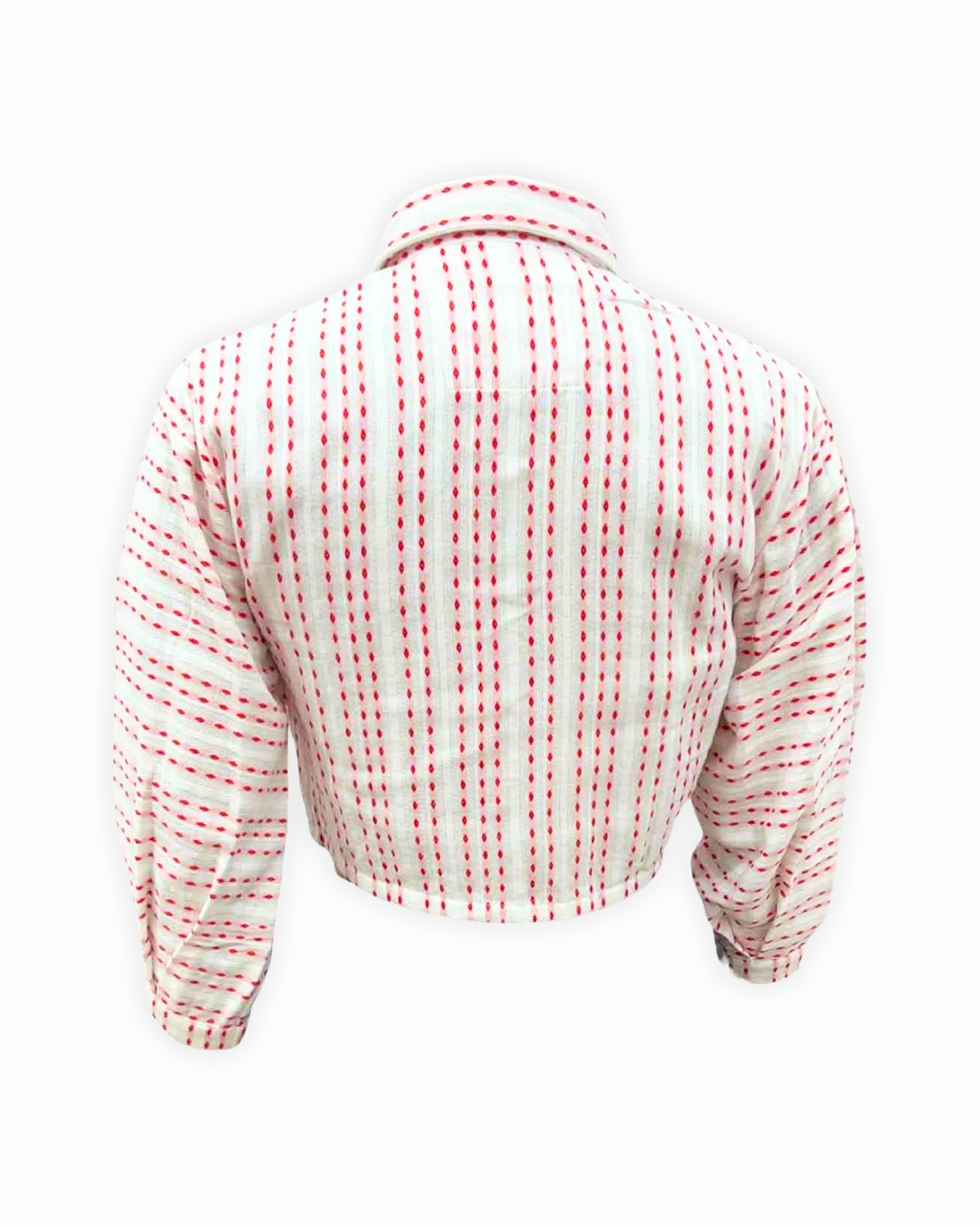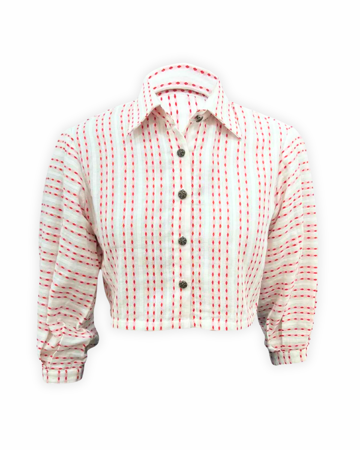 Red Striped Cropped Shirt with Puff Sleeves – Everyday Chic