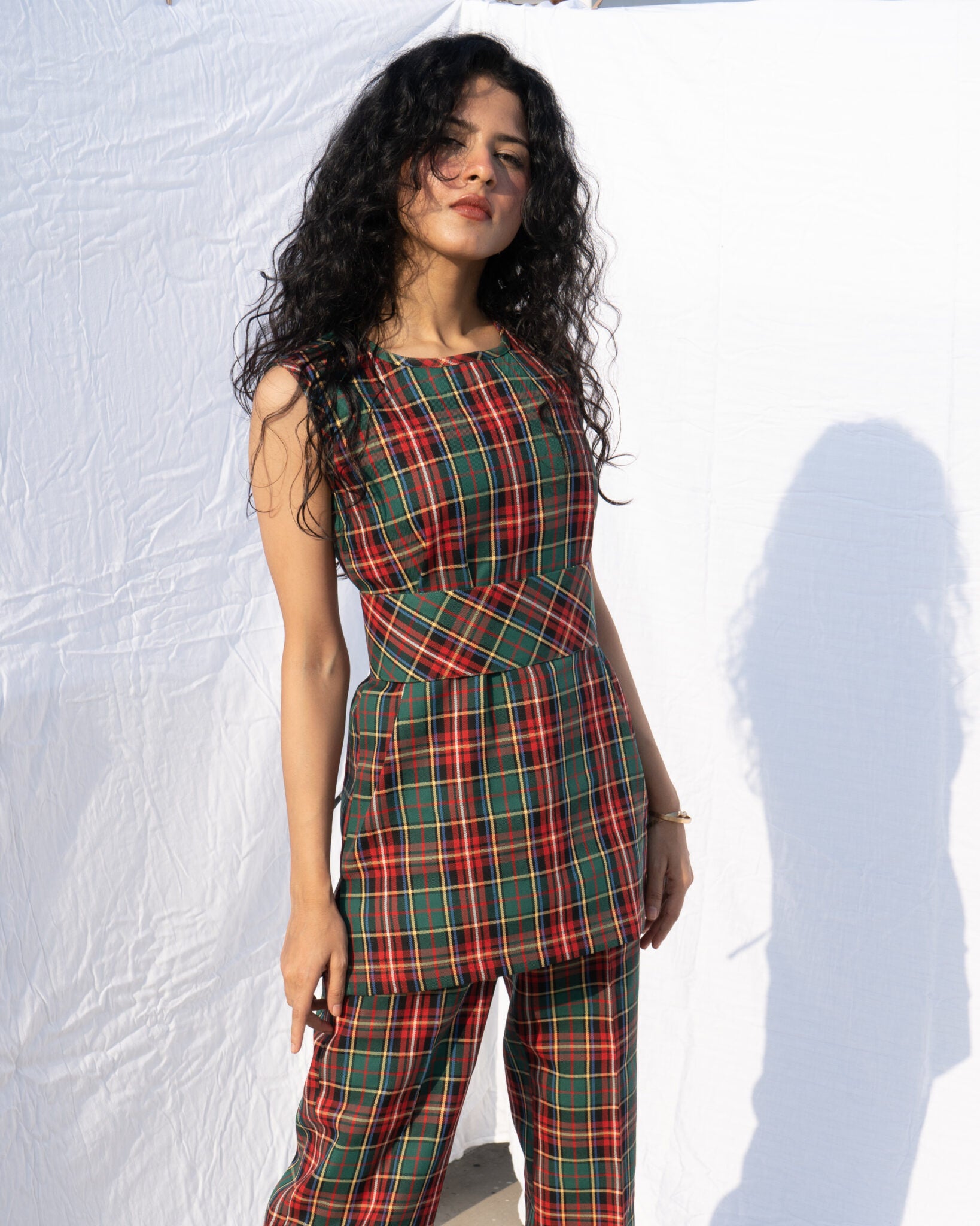 Sleeveless Red And Green Check Tunic – Plaid Casual Outfit for Women