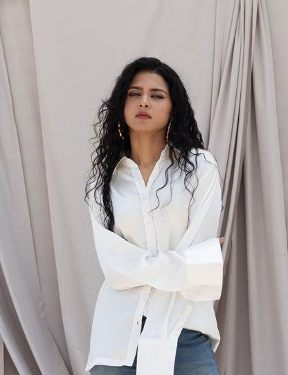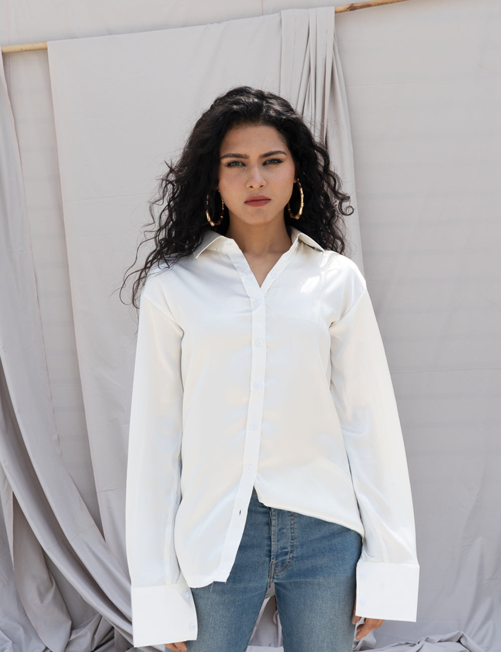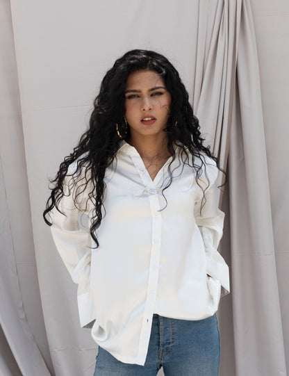 White Satin Shirt for Women – Notch Collar, Relaxed Fit