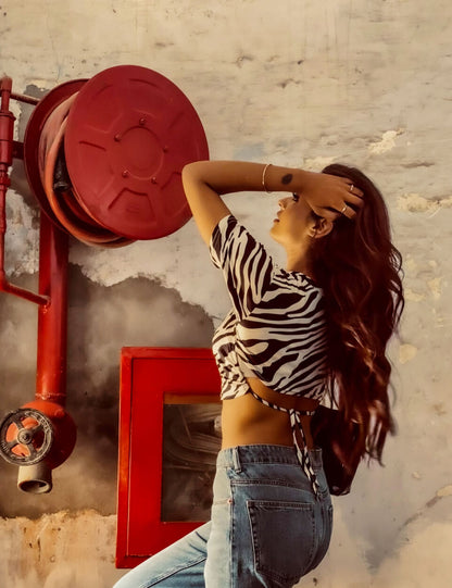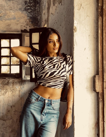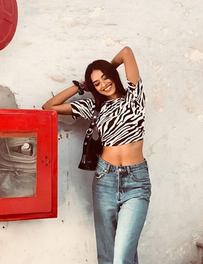 Wild, fearless, and unapologetically bold 🖤🤍. This zebra print bodycon crop top is designed with a tie-up open back that makes every exit as stylish as the entrance. The stretch knit fabric ensures comfort while keeping the fit sleek and tight to the body.